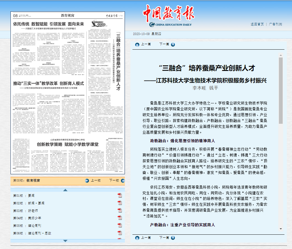• 中国教育报:“三融合”培养蚕桑产业创新人才