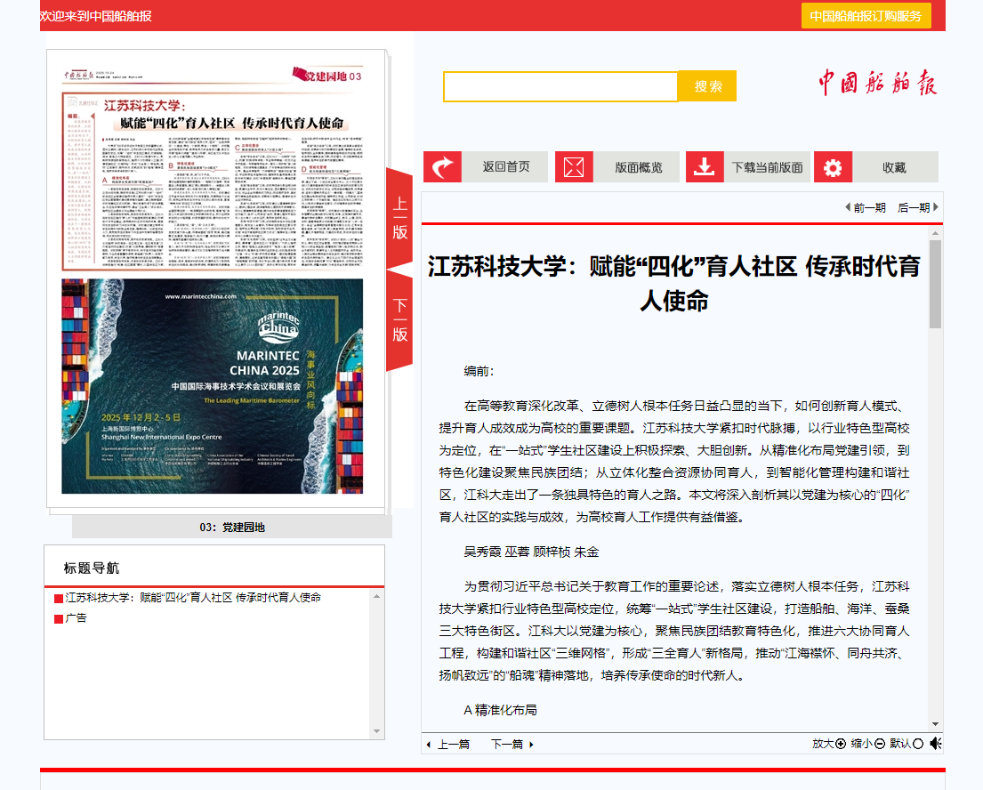 • 中国船舶报: 赋能“四化”育人社区 传承时代育人使命