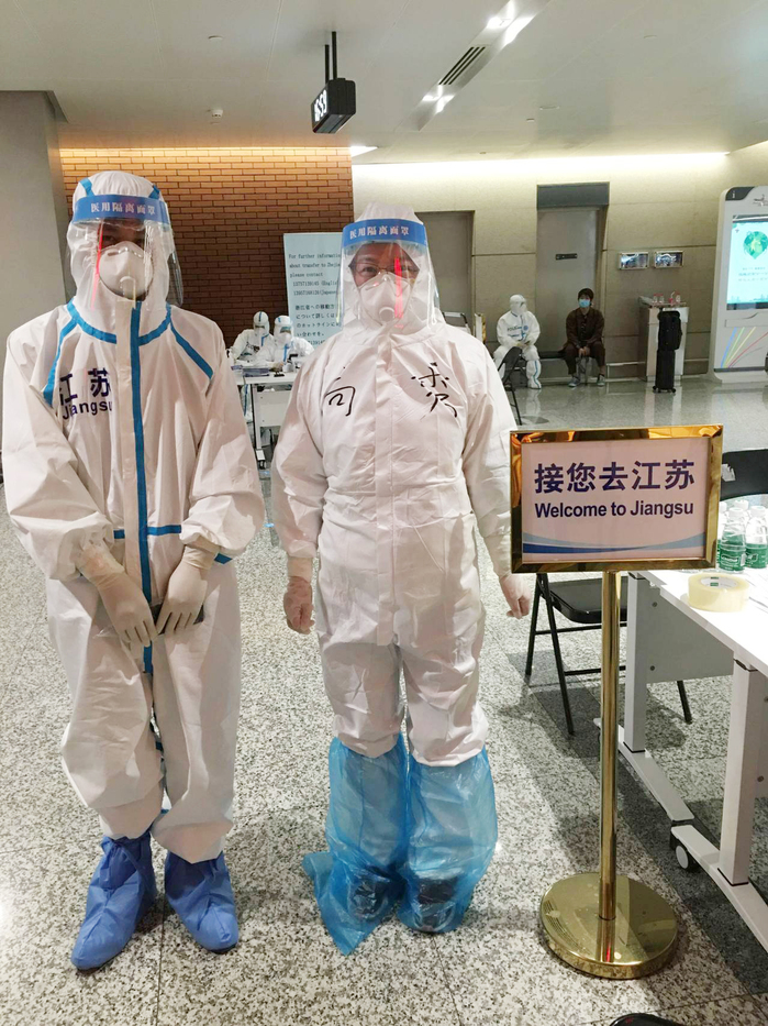 “你们见过凌晨四点的上海吗?”26日凌晨四点,高秀睡意正浓,忽然听到“当当”敲门声“惊坐起”,组长在门外简短命令“出发”。组长是有30年工龄的老公安,做事从来都是雷厉风行。高秀在战“疫”日记中记下了工作感受——“前一晚江苏省防疫防控指挥部下达新命令,所有回苏入境旅客都配发防护服,以防交叉感染。所以当天的任务就多了一项。到达浦东T2已有26人在等待,机场接驳的战友建议先跟外籍人士解释一下,希望他们配合穿戴防护用品。由于是第一次执行这项任务,整个配发及讲解过程有些忙乱,有的乘客随意发挥,不是弄坏鞋套就是手套带不上。当26人全部穿戴好,我已是汗流浃背,汗透的衣服在不透气的防护服里潮潮的黏在身上。”