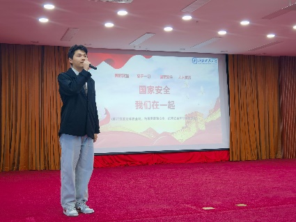 深蓝学院2022级新生吉飞飞结合红色革命历史和自身认识体会进行了宣讲,呼吁广大青年学生,要让保密意识和保密常识扎根于心,外化为行。