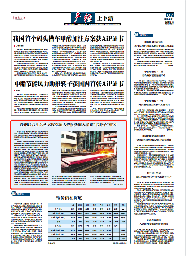 目前,沙钢集团在300千焦/厘米大热输入可焊钢方面处于国内领先地位,市场占有率超过65%。近年来,沙钢集团为中国船舶集团有限公司旗下上海外高桥造船有限公司建造的世界最大FPSO供应了3万多吨大热输入可焊钢。此外,沙钢集团还为中国船舶集团旗下广船国际有限公司建 造的 华南 地区 首批16000TEU超大型双燃料集装箱船提供了首批EH40钢板。沙钢集团提供的耐超大焊接热输入高端船板钢,在700千焦/厘米超大热输入焊接时焊接接头仍可保证低温韧性和优异的强度,是全国首个通过船级社认证并实际应用的700千焦/厘米级超大焊接热输入高端船板钢产品。外高桥造船和广船国际等船厂反映,采用沙钢耐超大焊接热输入船板钢产品,焊接接头性能稳定,焊接效率可提升20倍以上,经济效益显著。