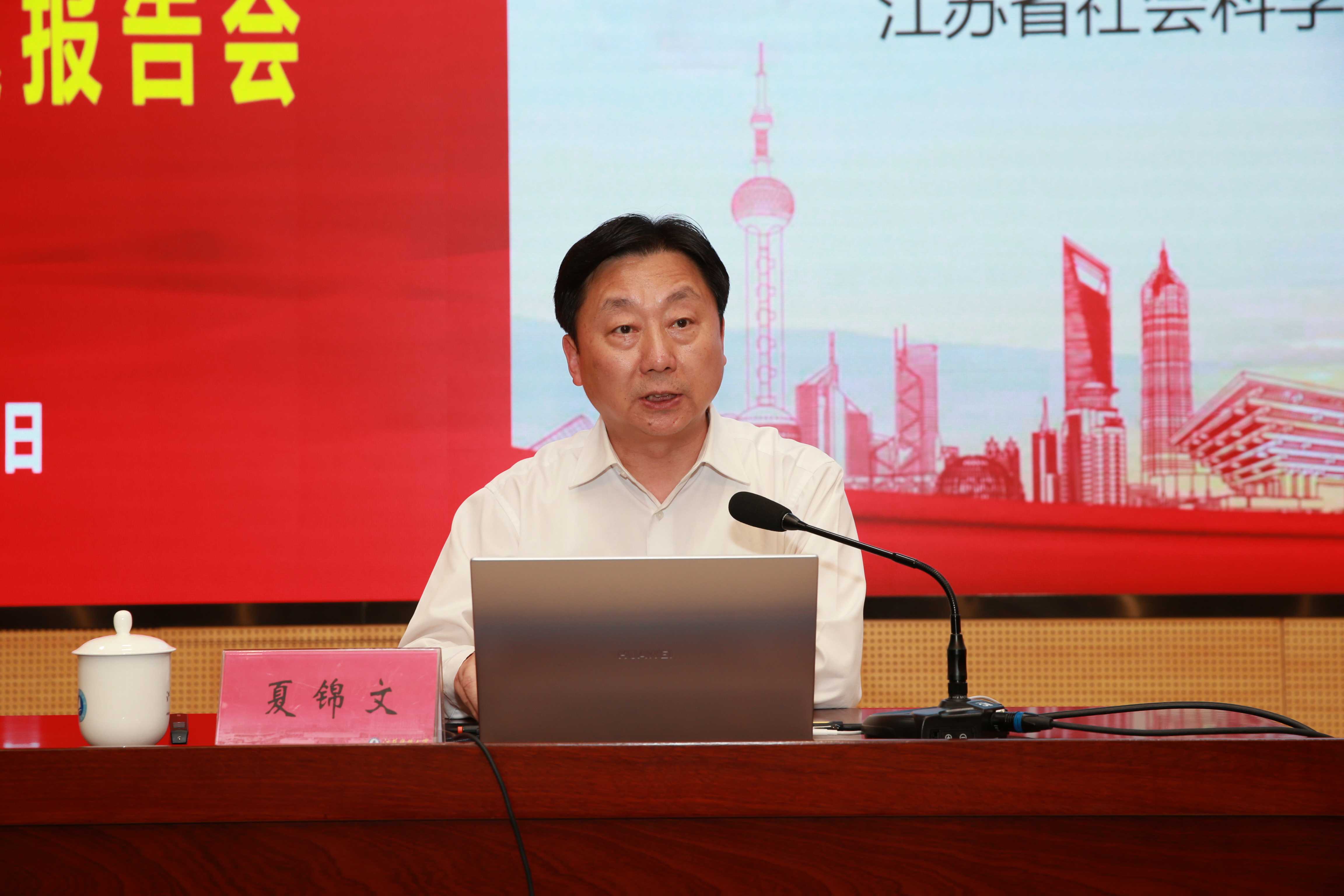 为进一步推动学习贯彻习近平新时代中国特色社会主义思想主题教育走深走实,华亿在线体育(中国)官方网站于6月5日下午,邀请江苏省社科院党委书记、院长夏锦文教授来校作主题教育专题辅导。省委第二十三巡回指导组组长陈小虎,指导组成员、省政法委一级主任科员刘静到会指导。党委书记葛世伦主持报告会。