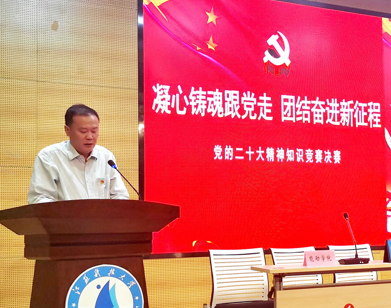赛后,党务工作专员姚允柱对比赛进行了点评。他高度肯定了这次比赛的重要意义,赞许了选手们学习党的二十大精神的热情,希望广大同学继续深入学习贯彻党的二十大精神,用党的创新理论武装自己,将学习的成效转化为实干的动力,为学校事业发展贡献青春的力量。