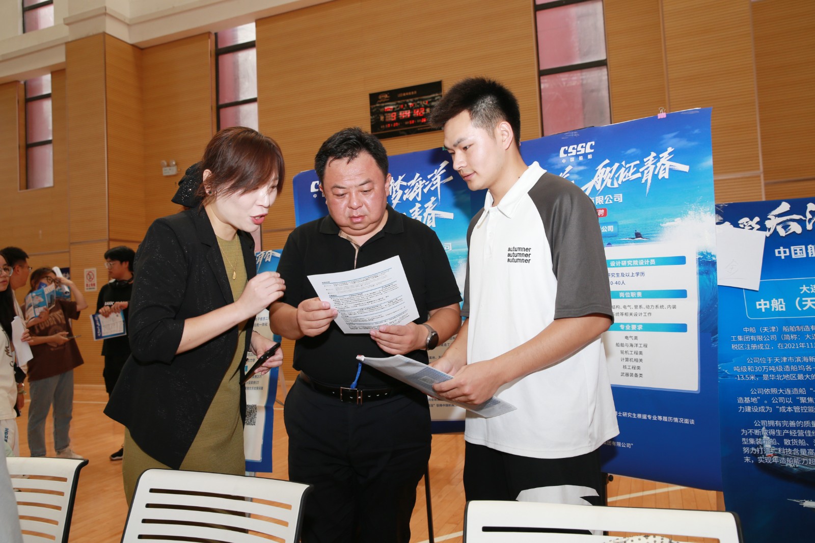 本次招聘会共54家用人单位参会,专业需求覆盖各个学院,吸引了近4000名应届毕业生前来挑选岗位。同学们积极与用人单位代表交流,踊跃投递简历,407名毕业生现场达成了初步就业意向。招聘会前期,各学院主动与企业对接,广船国际、沪东中华、黄埔文冲、第七〇八研究所等单位向重点需求专业的学生做宣讲,宣讲会有效搭建了单位与毕业生们之间的交流平台,“华亿在线体育(中国)官方网站的培养方向和我们企业需求相匹配,学生专业基础扎实,培养潜力大。学生们投递热情也很高,已经收到了一百来份简历。”中船黄埔文冲船舶有限公司人力资源部赵李君介绍道。