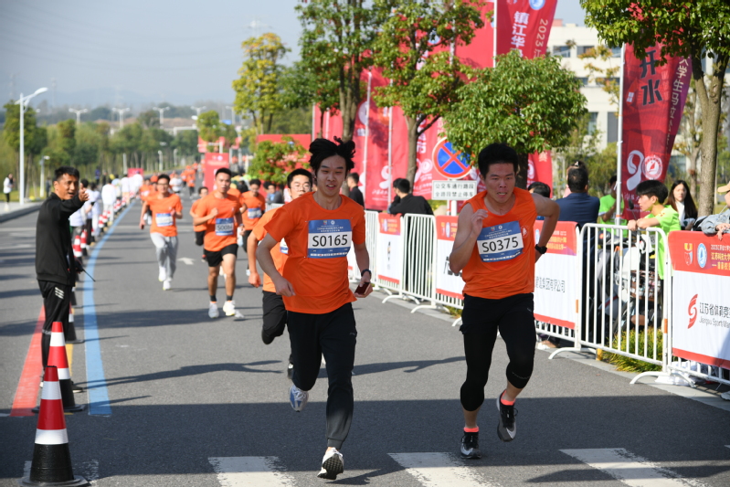 8点59分,主席台领导嘉宾鸣笛发令起跑,选手们铆足劲冲过起点,释放青春正能量。
