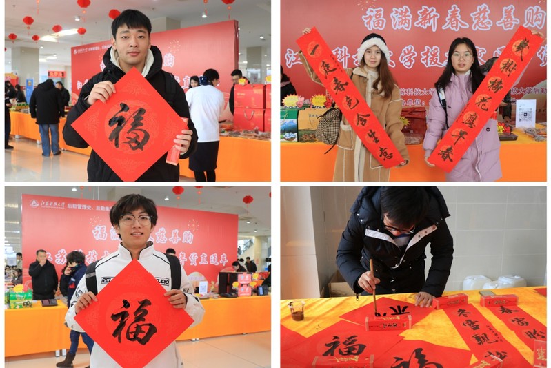 校团委书法协会的蒋宗豪同学在现场挥毫泼墨,书写了不同字体的“福”和一幅幅寓意美好的春联,将写的福字和春联送给参加活动的师生,把美好的祝福与希望送给他们。当一幅幅散发着清新墨香的春联拿到手上之时,大家喜悦之情溢于言表,纷纷表示手写的福字和对联更有意义。既感受到了我国传统文化艺术的博大精深,也展示了当代大学生的艺术风采。