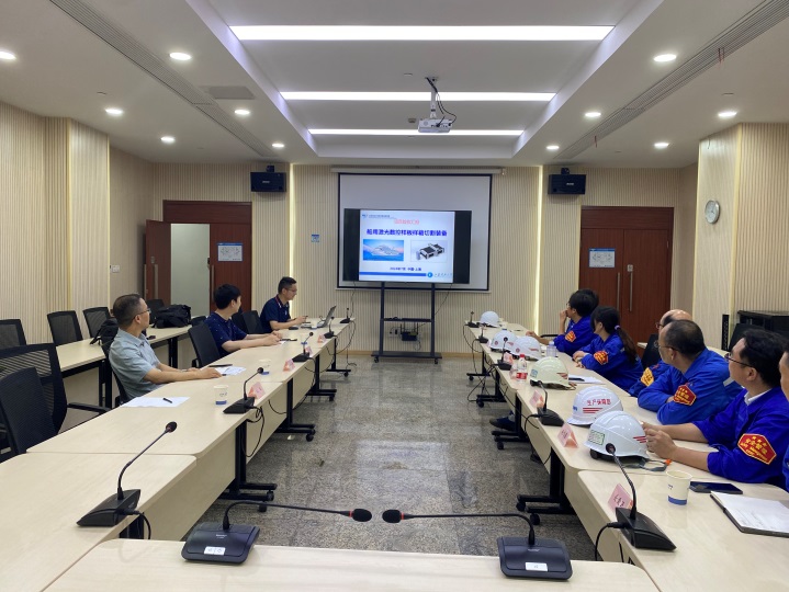 双方在激光数控样板切割装备安装现场就设备功能与操作问题开展深入交流,明确设备安全操作规范和注意事项并形成作业指导手册。在双方领导的共同见证下,举行了设备投用仪式并进行第一块样板试切,项目技术负责人许静对项目研制背景、核心技术、取得的成果及后续工作进行了详细汇报。经过双方领导和技术人员的现场勘查、交流,一致同意设备验收并正式投入使用。