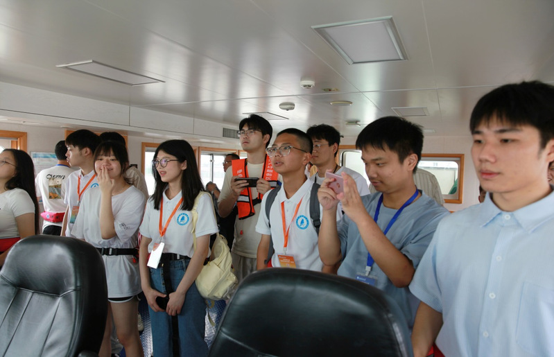 活动中,营员们乘坐“海巡0639”艇来到集绿色航运服务站、绿色船民服务站、防污染服务站、应急服务站、绿色能源服务站五大功能为一体的六圩水上绿色服务区,了解了“一次靠泊、多项服务”所给常年航行在长江的船员工作、生活所带来的便捷,深刻体会到水上交通管理和绿色航运的重要性。随后,营员们前往六圩河口快反处置中心,观看了海事应急处置演练,了解了高新技术在海事动态监控、提前干预、交通组织、应急处置、服务保障中的应用。此次海事之旅不仅彰显了长江镇江综合治理体系和治理能力现代化水平,也进一步激发青年学子对海洋和航运事业的兴趣。