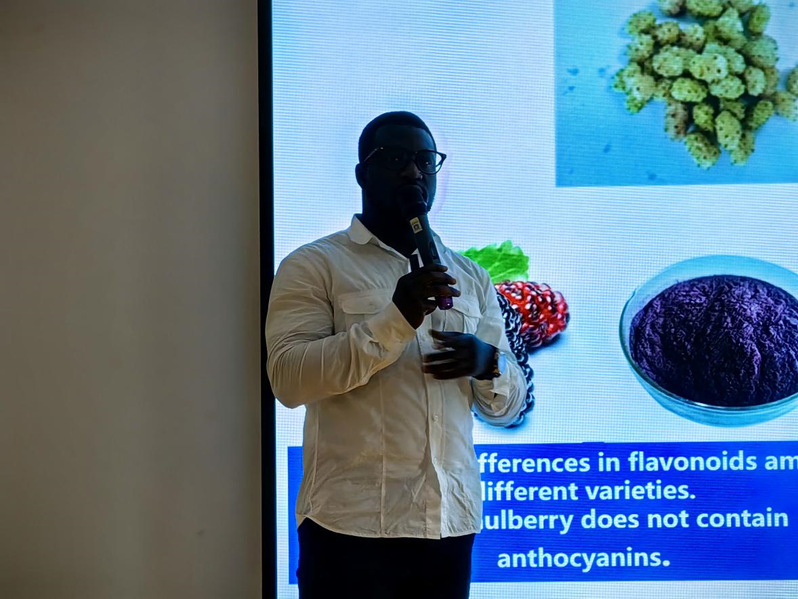 Herman Richard Ansah老师以“家蚕资源利用与生物产业新技术进展”为主题,聚焦酶类催化性能的改善、固定化酶类表面微环境的修饰和基于微流场的新型反应器的开发等技术,深刻阐述蚕桑资源高附加值产品的生物转化技术。
