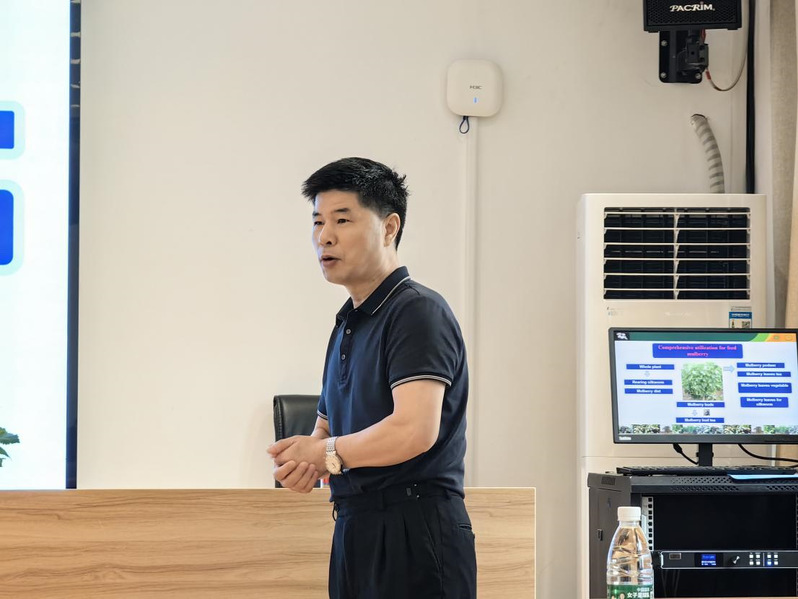 李木旺老师以“蚕桑的起源及现状”为主题,他表示:我国的桑树栽培主要仍是用于养蚕,但桑叶在食品、饮料、动物饲料等方面也有广泛的应用,同时,桑树还具备保护和恢复地区环境的功能。自动化、工厂化养蚕技术正在走向成熟,将来可能成为养蚕的主要方式。