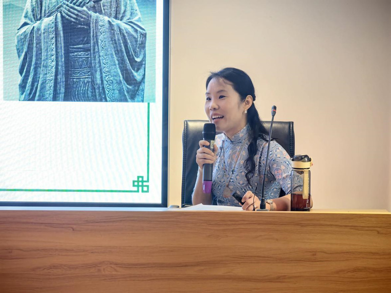 许晏老师以“中国织锦 纹样之美”为主题,分别介绍了四大名锦——蜀锦、宋锦、云锦、壮锦,授课期间许老师还向学员们展示了绫罗绸缎,并现场演示织布机让学员们体验古代中国丝织的魅力。