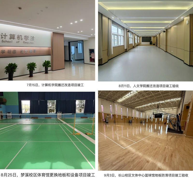 此次暑期改造项目涵盖广泛、意义深远。梦溪校区计算机学院与人文学院搬迁改造,为学科发展搭建新平台,开启全新征程;马克思主义学院实验室改造,营造更优学术空间,助力思想交流与碰撞;梦溪校区体育馆地板及设备更新、长山校区体育馆地面防滑处理,全方位保障师生运动安全;教四教学楼出新及更换家具,打造更加舒适宜人的学习环境;张家港校区食堂外立面拆改解危项目和东苑食堂屋顶面板解围项目,及时排除隐患,切实解决师生生活难题;江科大一村301外教公寓出新改造,提升外教居住品质,彰显学校人文关怀;行政楼七楼纪委办公用房改造,为管理部门提供更安全、健康、合规的工作空间。每一个项目都承载着学校对师生学习生活环境的重视与关怀,是学校发展的生动实践。