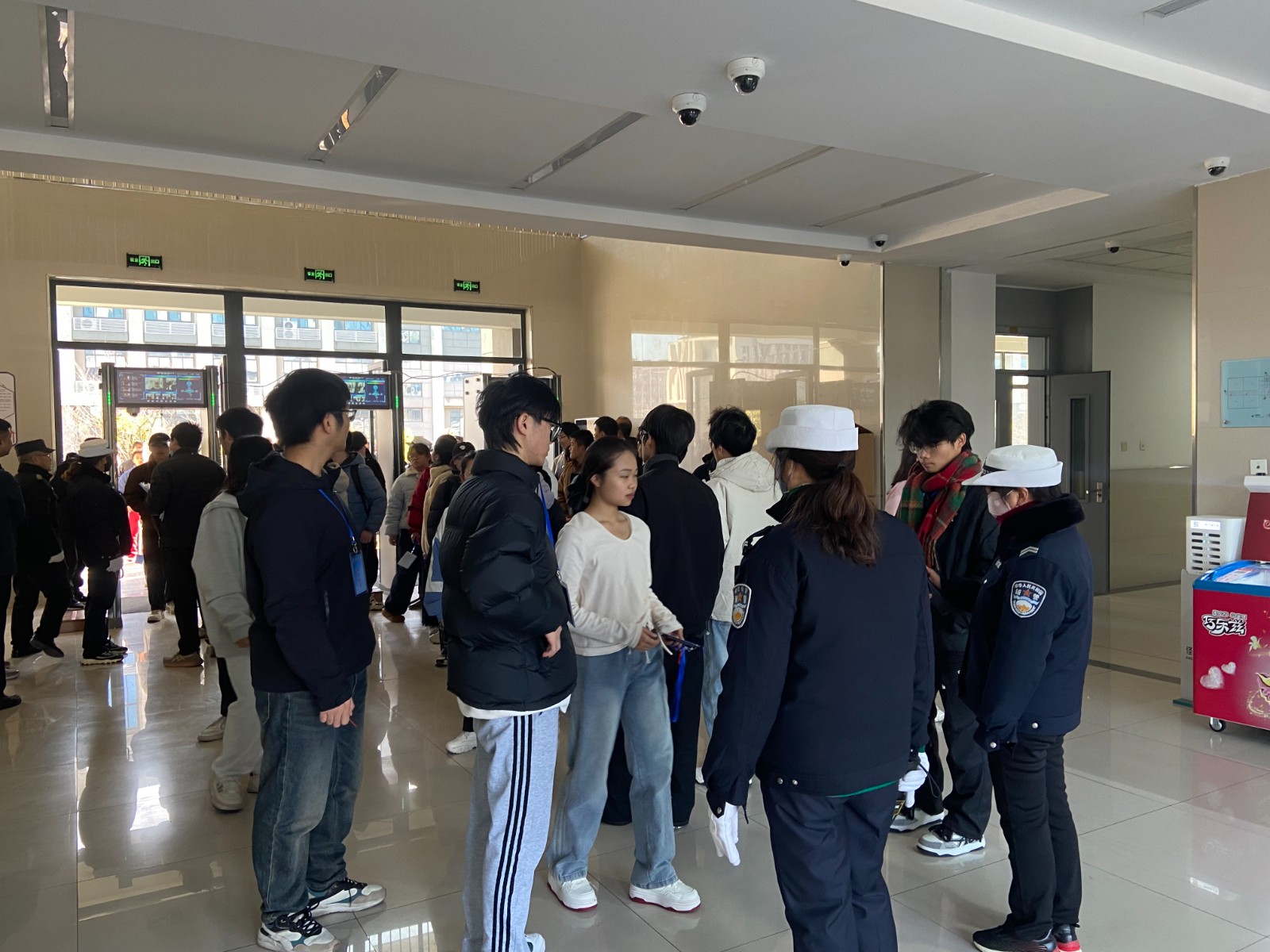 面对考试期间的低温天气,学校提前采取系列防寒保暖措施。校领导于12月19日带队开展考前最终检查,确保考场设施、安检设备、保密场所等关键节点万无一失。考点内配置了充足的取暖设施,设立了热水供应点、免费口罩领取处及室内休息区,以细致入微的服务为考生营造温暖、安心的考试环境,传递出浓浓的校园温情。