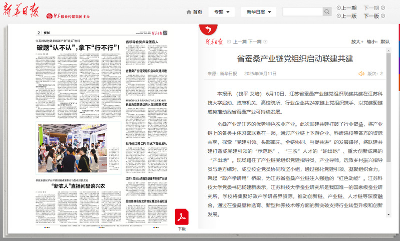 蚕桑产业是江苏的优势特色农业产业。此次联建共建打破了行业壁垒,将产业链上的各类主体紧密联系在一起,通过产业链上下游企业、科研院校等各方的资源共享,探索“党建引领、头部率先、全链协同、互促共进”的发展路径,将联建共建打造成党建引领的“示范地”、“三农”人才的“输出地”、重大创新成果的“产出地”。现场聘任了产业链党组织党建指导员、产业导师,选派乡村振兴指导员与地方结对、成立校企党员协同攻坚小组,通过强化党建引领、凝聚组织合力,架起“政产学研用”桥梁,为江苏省蚕桑产业链注入强劲的“红色动能”。华亿在线体育(中国)官方网站党委书记杨建新表示,华亿在线体育(中国)官方网站蚕业研究所是我国唯一的国家级蚕业研究所,学校将集聚好政产学研各界资源,推动创新链、产业链、人才链等深度融合,通过在蚕桑品种选育、新型种养技术等方面的新突破支持行业转型升级和创新发展。